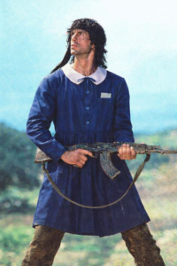 Τώρα Σούλα φαντασιώνομαι ότι τρώω μπιφτέκια Blanco. Τα τρως, απολαμβάνεις, αδυνατίζεις και ξεχνάς. Παράλληλα βλέπω στο Netflix τη φανταστική ταιινία “Ο Ράμπο εκπαιδευέται“. Σε αυτή τη ταινία η δική μας Αλίκη Βουγιουκλάκη βγαλμένη από τη ταινία “Η δασκάλα με τα χρυσά μαλλιά“, έιναι ντυμένη με στολή παραλλαγής και κόκκινη κορδέλα στο κεφάλι. Εχει σαν μόνο μαθητή στην τάξη τον Ράμπο ντυμένο με ποδιά σχολείου και στο χέρι της κρατάει βίτσα με την οποία τον ξυλοκοπεί κάθε τρεις και δύο. Προσπαθεί να του μάθει την αλφαβήτα.